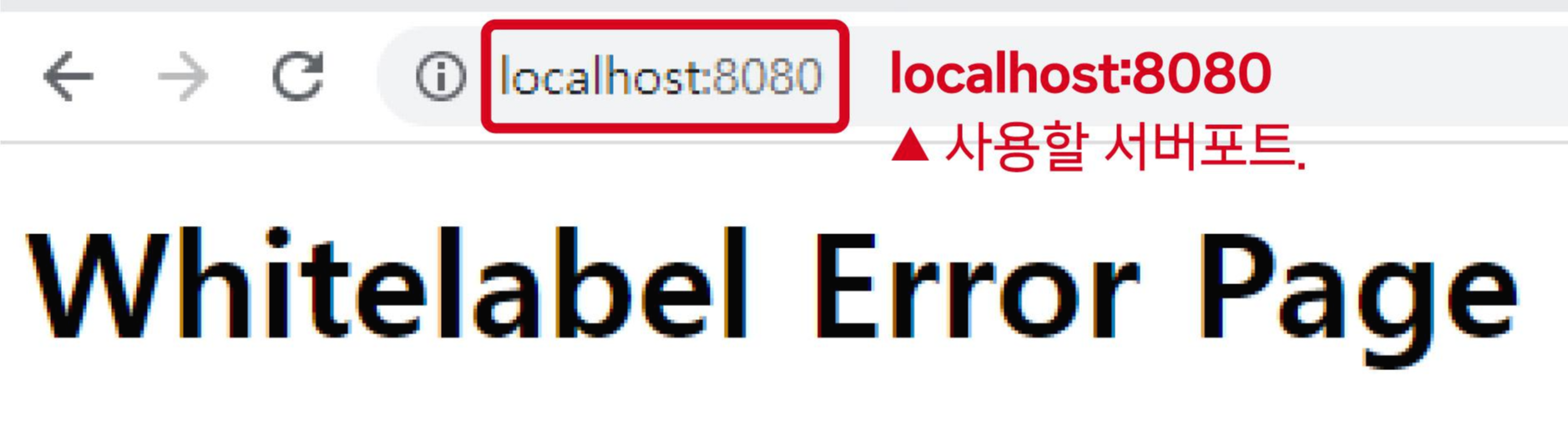 4. 웹창에 localhost:8080 입력 후 서버가동 확인. 에러페이지가 뜨는 이유는 아직 작업을 안했기때문.